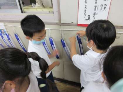 算数科の「いろいろな かたち」の学習で、つつや箱を並べたり積みあげたりして、グループのみんなで作ったものだそうです。それぞれの「心の目」で作り上げたものなので、見ようによって様々なものに見えてくるのが不思議でした。