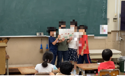 今日は1年生にむけて学校紹介をしました。一生懸命準備したポスターはどれも力作です。ドキドキしながらも、2年生のお兄さん、お姉さんらしく、堂々と前に立って紹介をしていました。
