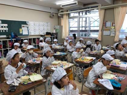 今日の給食は、チキンレバーカツ・ケチャップ煮・たことキャベツのバジルソテー・黒糖パン・牛乳です。
