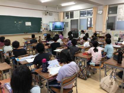 児童朝会の後は今年度初めてのモジュール学習をしました。