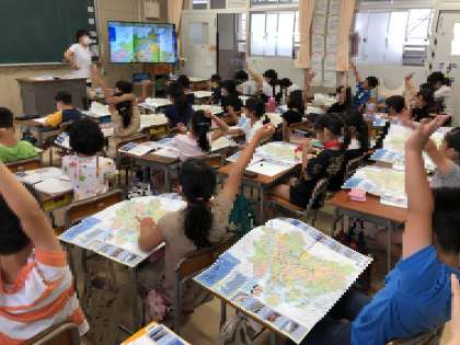 地図をひろげて「ここ行ったことある!」ととても楽しそうに学習することができました。