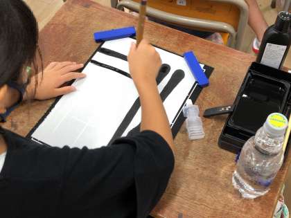筆を使って横線や縦線、曲線を書く練習をしました。