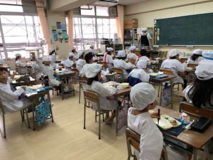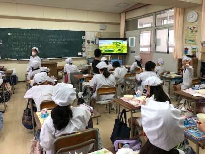 さんどまめのごま和えは、ねりごまといりごまの香りで苦みも少なくて、さんどまめが苦手な児童でも食べやすい味つけになっていました。