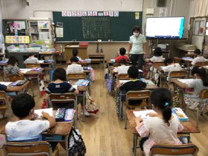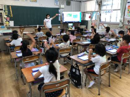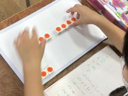 算数ブロックを動かしながら“あわせると”や“ふえると”の言葉の確認をしました。