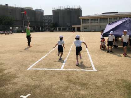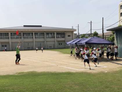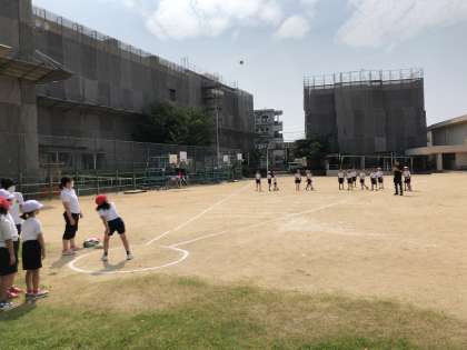 今日はグラウンドで50m走とソフトボール投げの測定をしました。