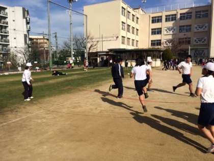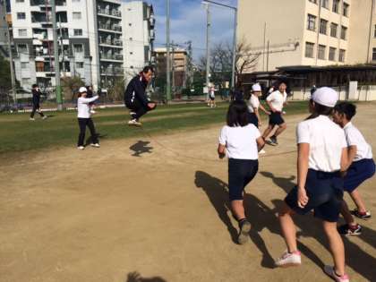 出前授業が終わり、休み時間になりました。運動場では、井高野中学校の和田副校長や生徒指導主事の井上先生が、子どもたちの大縄に参加して下さいました。とても若々しい飛びっぷりでした。本日は、誠にありがとうございました。