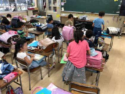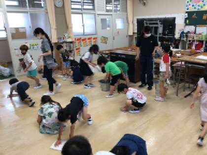 ぞうきんが真っ黒になるまで一生懸命教室をきれいにしていました。