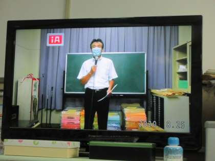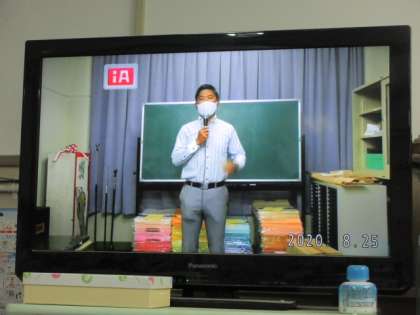 まだまだ新型コロナウイルスの感染や熱中症に気を付けないとならないため、テレビ放送で始業式を行いました。