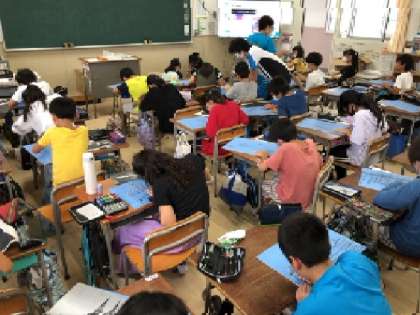 図画工作科では、世界の有名な観光地をテーマに版画をしています。