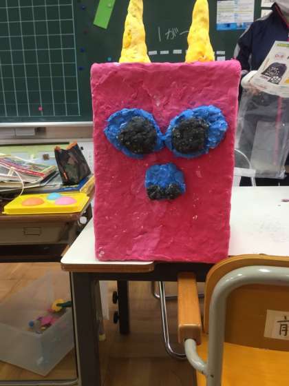 なかよし学級で、子どもたちが作った作品です。来月に、節分の日があるのでそれに向けてのお面と4月から1月までのカレンダーです。とても上手に作っています。