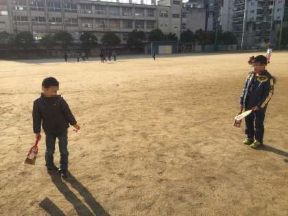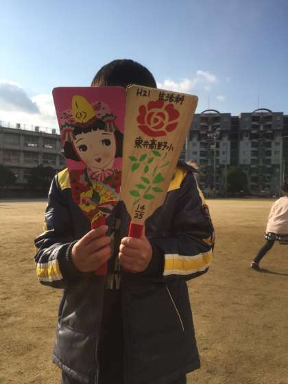 6時間目、2年生は生活科の「昔遊び」の単元を運動場でしました。昔遊びである、羽子板や大縄跳びでの「郵便屋さん」をしていました。とてもなつかしかったです。