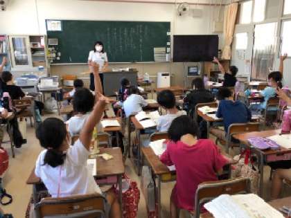 文章から「だれが」「何が」にあたる主語と、「どうした」にあたる述語、詳しく表す言葉を見分ける学習をしました。