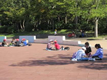 制限時間を終え、結果発表の前にみんなで楽しくお弁当を食べました。たくさん歩き回りお腹がペコペコだったのか、お弁当のふたを開けるスピードの速いこと速いこと!!!