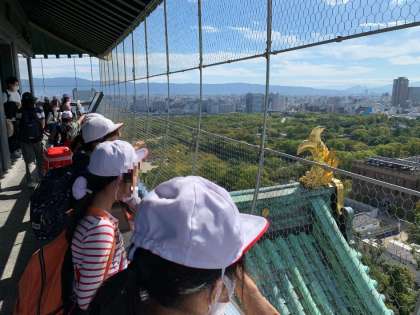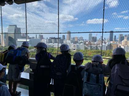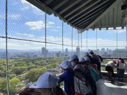 天守閣の展望台に到着しました。天気が良く、絶好の景色が一望できたようです!