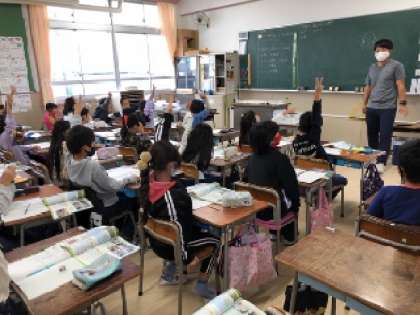 Liza先生の好きな食べ物や色、スポーツ等を聞く練習をしました。