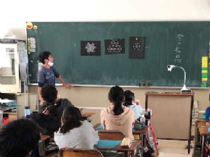 6年生は画用紙を切って、雪の結晶づくりをします。
