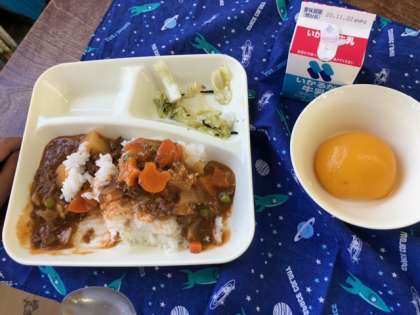 今日のハヤシライスには、ハートやくまのラッキーにんじんが入っていました。