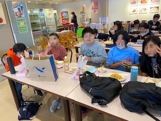 混雑する前に(?)昼食を食べる児童もいるようです。今年度はミールクーポンを使用し、施設内の飲食店で食べます。