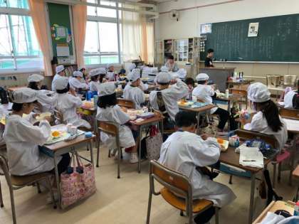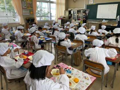 なすのミートグラタンは、こんがりと焼き色がついていて、ミートソース味でなすの苦みも少なくて、なすが苦手な児童でもたくさん食べることができました。