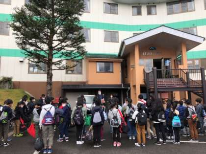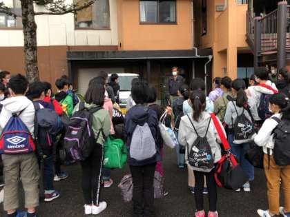 到着後すぐに開舎式が行われました。1日お世話になる名色ホテルの方に全員でしっかりと挨拶しました。