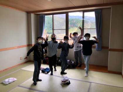 今晩友だちと泊まる部屋に入り、大はしゃぎの子どもたちです。寝る前が今から楽しみです!