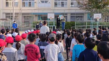 今日の児童朝会は、保健美化委員会から手洗いうがい週間の告知がありました。校長先生のお話の最後にもありましたが、これからコロナウイルスに加え、インフルエンザや風邪などにかかりやすい季節となります。しっかりと行い、学級休業ゼロを目指しましょう!!!
