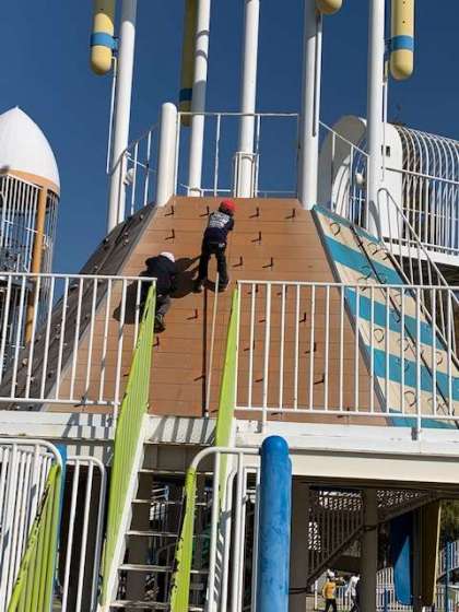昼食の後は、わんぱく広場で時間まで遊びます。11月とは思えない気温なので、みんな汗びっしょりです。