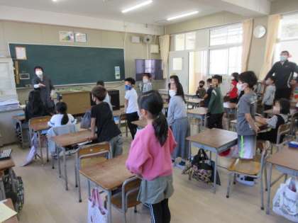 最後は「ギーギードア」のお話を聞かせてくださいました。館長さんのお話の仕方がとてもお上手で、児童のみならず参観していた教師まで引き込まれ、教室は笑いに包まれました。