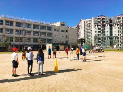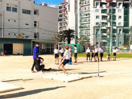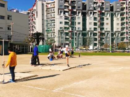 リズミカルな助走から力強く踏み切って跳び、記録に挑戦しています。
