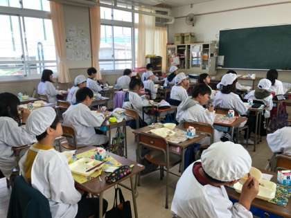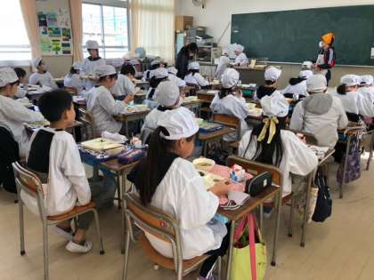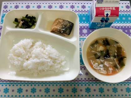 今日の給食は、さばのみぞれかけ・みそしる・小松菜の煮びたし・ごはん・牛乳です。