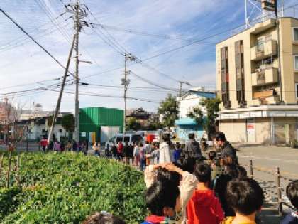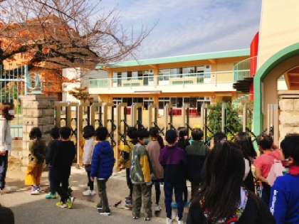2年前まで通っていた懐かしい保育園の前も通りました。知っている先生に手を振ってもらって子どもたちも嬉しそうでした。
