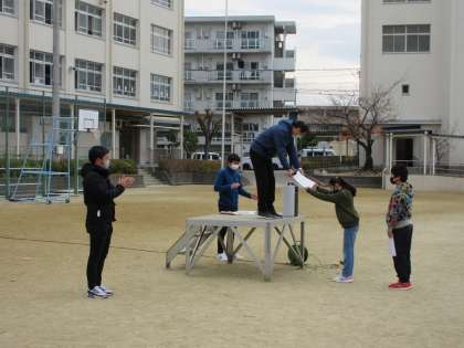 今朝の児童朝会では2つの表彰式が行われました。1つは「命を大切にすることやみんなと仲良くすること」などに関する標語、もう1つは大阪市防火防災図画募集の絵画です。どちらも6年生が入賞しました。立派な表彰状を校長先生からいただき、小学校生活の良い思い出になったことと思います。