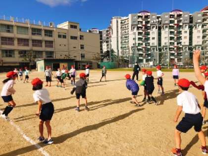 学期末にあるドッジボール大会に向けて、ドッジボールの練習をしています。