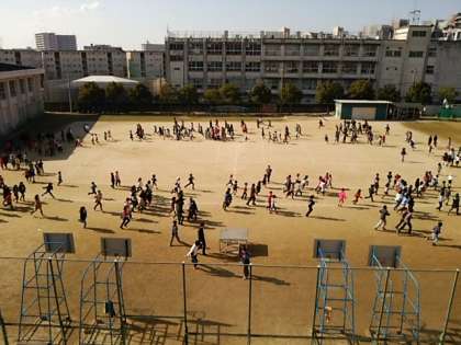 2月4日(水)2時間目の後の休み時間、運動場には、たくさんの児童がトラックを走りました。今日は、日差しもあたたかく、いつもより児童の数が多かったような気がします。