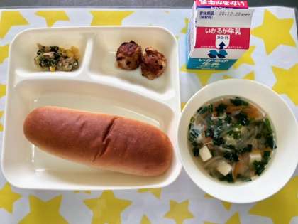 今日の給食は、あげシューマイ・とうふのスープ・ツナとチンゲンサイのいためもの・黒糖パン・牛乳です。