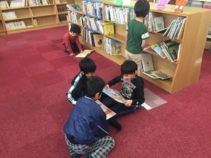 5時間目の図書の時間です。きれくなった図書室で、自分たちの読みたい本をとても楽しそうに選んで読んでいました。
