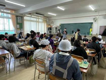 今日の給食は、ほたて貝のグラタン・スープ・わなし(カットかん)・黒糖パン・牛乳です。