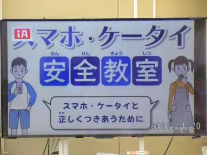 5時間目、NTTの方に「スマホ・ケータイ安全教室」の出前授業をしていただきました。本来なら多目的室や講堂に集まって授業を受ける予定でしたが、新型コロナウイルス感染防止対策のため、テレビ中継での授業となりました。