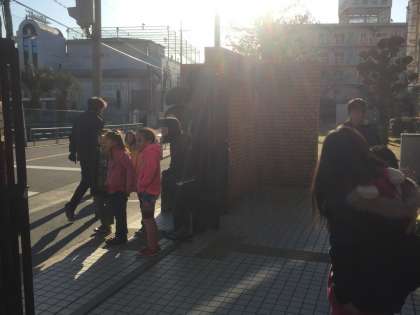 3年生のあいさつ運動の様子です。寒い中、元気よくあいさつしています。