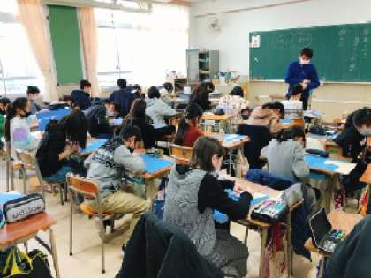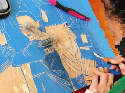 6年生は図画工作科で彫刻刀を使って作品作りをしています。