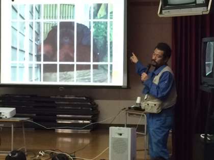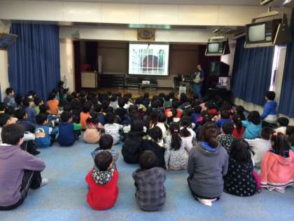 2月13日(金)、3時間目に多目的室で1・2年生対象の動物教室がありました。講師の先生は天王寺動物園の西岡先生です。子どもたちは、動物の生態や動物園の舞台裏のお話に興味津々でした。