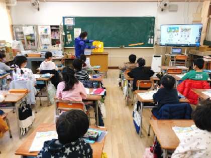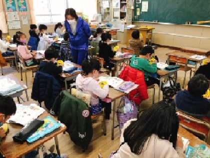 短い針で何時かをよみ、長い針で何分かをよむことを確認した後、1めもりが1分を表すことを学習し、時計をよむ練習をしました。