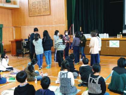 6年生は5,6時間目に茶話会をしました。子どもたちの個人の発表や、みんなでするゲームなど楽しいプログラムが盛りだくさんで、友だちと楽しい時間をすごすことができました。お世話になった先生方に感謝を伝える場面もありました。最後には6年生の担任からの出し物もあり大盛り上がりでした。