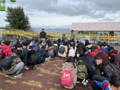 集合場所と時刻を確認して、今からグループ行動です。どんな乗り物に乗れるか楽しみです。