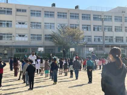 今朝は、今年度はじめての児童朝会がありました。十分な距離をとってマスクを着けて行いました。校長先生から元気な挨拶の大切さについてのお話を聞きました。挨拶をして、新しい学年の良いスタートを切っていけるといいですね。
