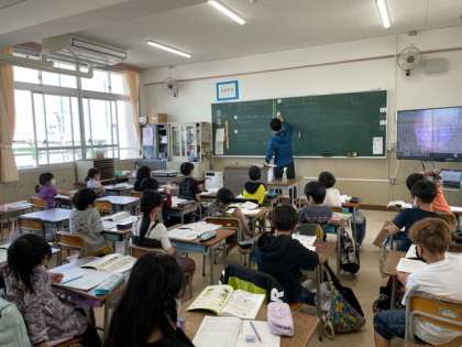 0のかけ算について学習しています。“答えはわかるのに説明すると難しい!”といいながら、子どもたちはどうしてその答えになるのかも考えていました。
