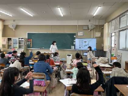 4年生は社会の授業で、日本の地図を見ながら都道府県などの勉強をしました。各都道府県の名前を手を挙げて元気に発表してくれました。