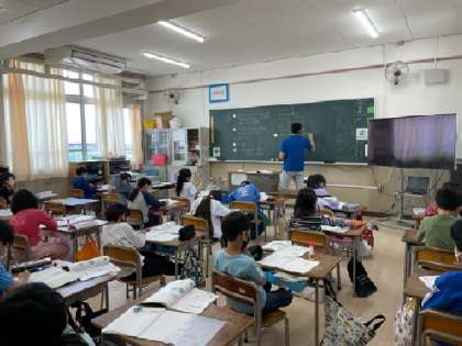 1組では、算数科でわり算の学習が行われていました。子どもたちは、九九を唱えながら答えを考えていました。わり算という新しい計算にも、前向きに取り組んでいました。