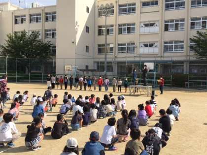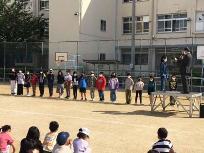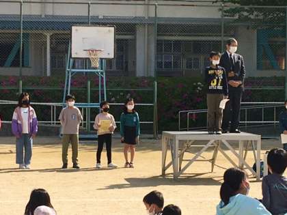 今日の児童集会は前期の代表委員(学級代表と委員会委員長、運営委員)の認証式と発表(自己紹介)がありました。