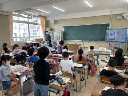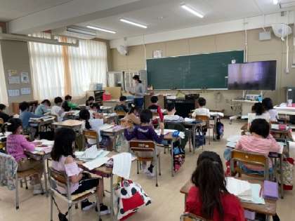 朝の自宅学習の答え合わせをしています。2年生も自分たちで丸付けができています。短い時間ですが、友だちの顔を見るとやる気や元気が出てきますね。午後も、自宅学習を頑張りましょう。